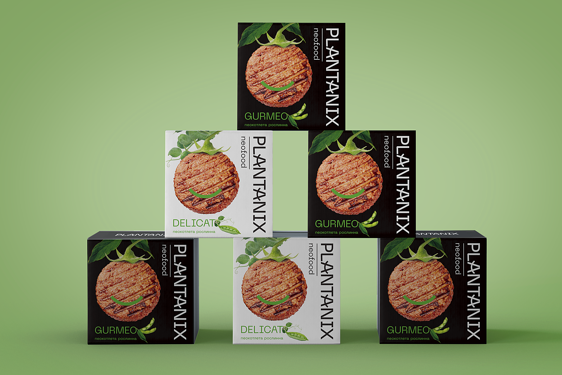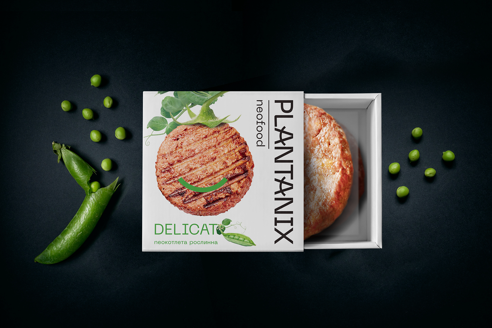 We started the packaging design from defining an idea in the first turn. The philosophy of plant-based meat was put into the basic - a new life for perfection, a finding of new existence. This vision has reflected in the name of Plantanix, which is of Latin origin. We created the concept of neofood and neocutlet. Neos means “new” in Greek. This expressively transfers the image of a "new reality" and a "broader view over the world."